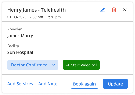 - Launch video visits directly from the scheduled appointment