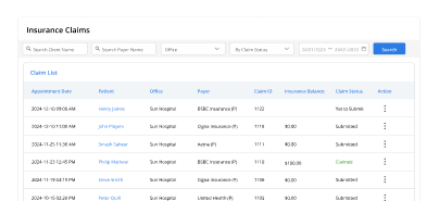 Consolidate patient appointment data, insurance eligibility checks, health vitals, encounter services, and documentation links into one unified view. Seamlessly transition to billing with automated claim generation, reducing errors and accelerating revenue cycle management.