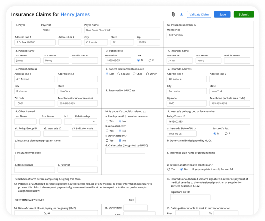 - Create custom patient claim forms